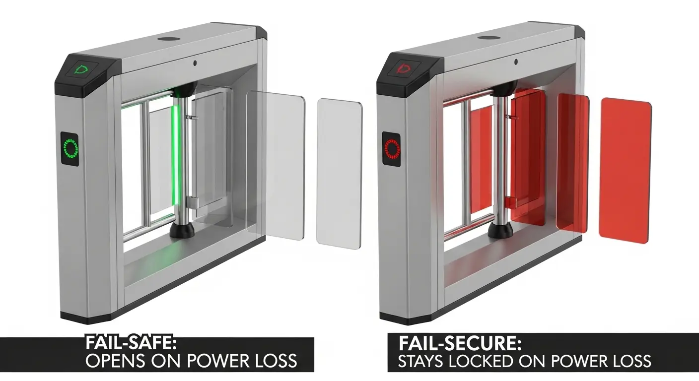 The key takeaway: fail-safe is about what happens when the system loses power. A fail safe turnstile gate defaults to human safety first. A fail-secure gate defaults to access restriction first.