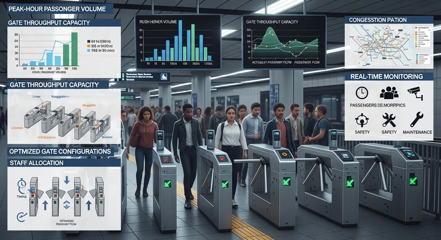 High-volume metro platforms need a minimum gate bank throughput of 200 passengers per minute across the full fare gate line. At 40–55 ppm per flap barrier lane, a bank of 4–5 lanes covers this requirement with one lane in reserve for maintenance periods. Based on our transit gate deployment analysis, the most common throughput failure in subway gate installations is sizing for the average hourly entry rate rather than the peak dwell-event burst — which concentrates 80–150 passengers into a 60–90 second window.